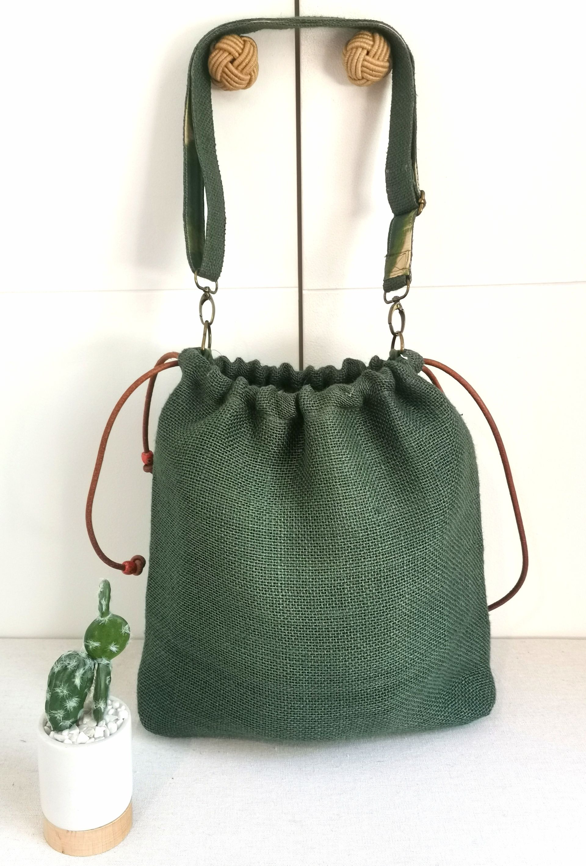 Utilizamos materiales naturales y sostenibles como linos, yutes, algodones y pieles veganas. Todos hechos a mano y con mimo.